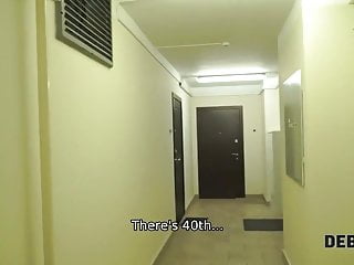 Debt4k. Sweetie with sexy red hair agrees to pay for big TV